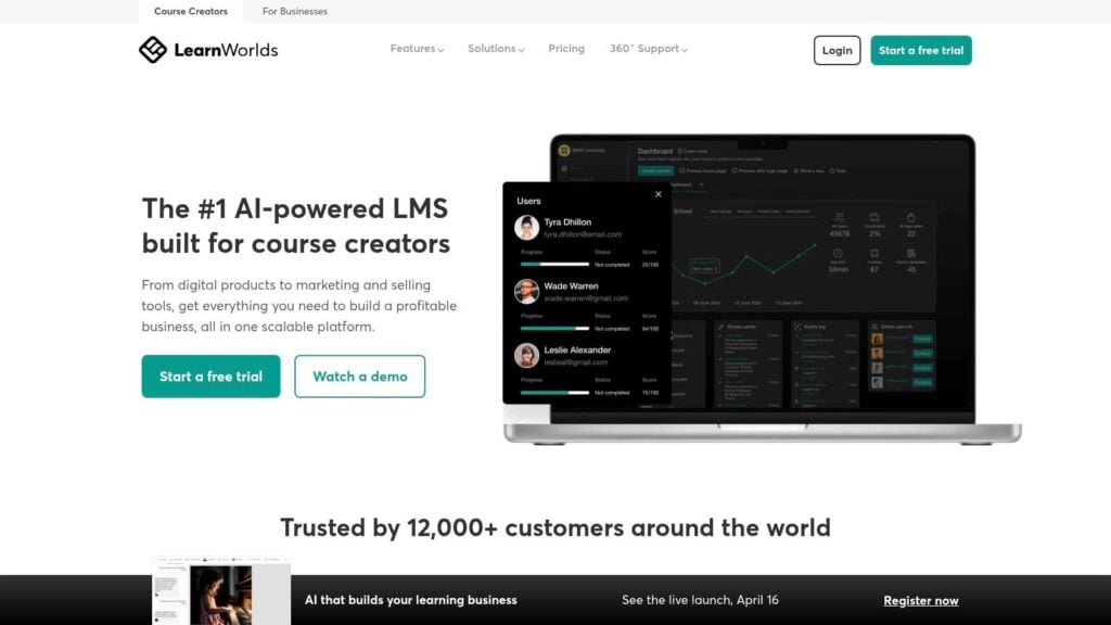 LearnWorlds is one of the first platforms I’d look at if your agency sells polished, client-facing education products and cares a lot about presentation.