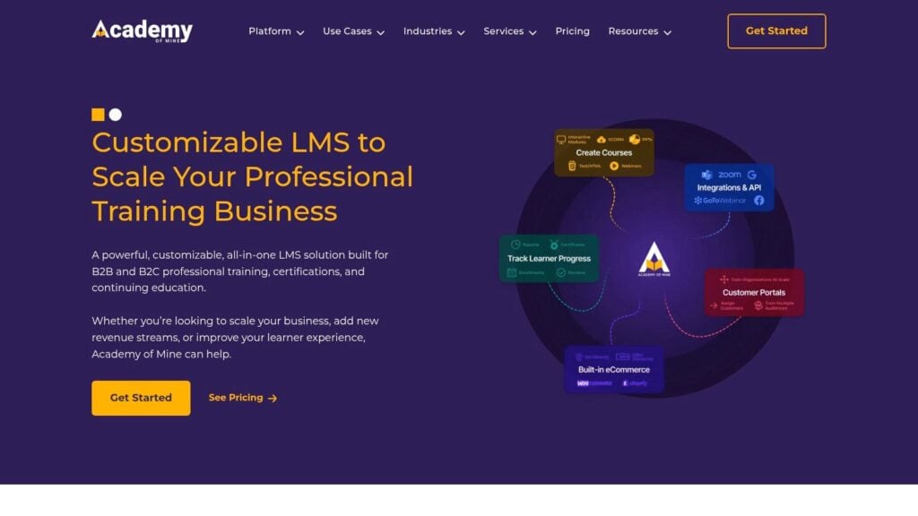 | Academy Of Mine | White‑label multi‑tenant portals, e‑commerce, implementation & ID services | B2B training companies and agencies selling training | Services arm for customizations, migrations and instructional design | Published entry pricing available; enterprise features custom quoted |