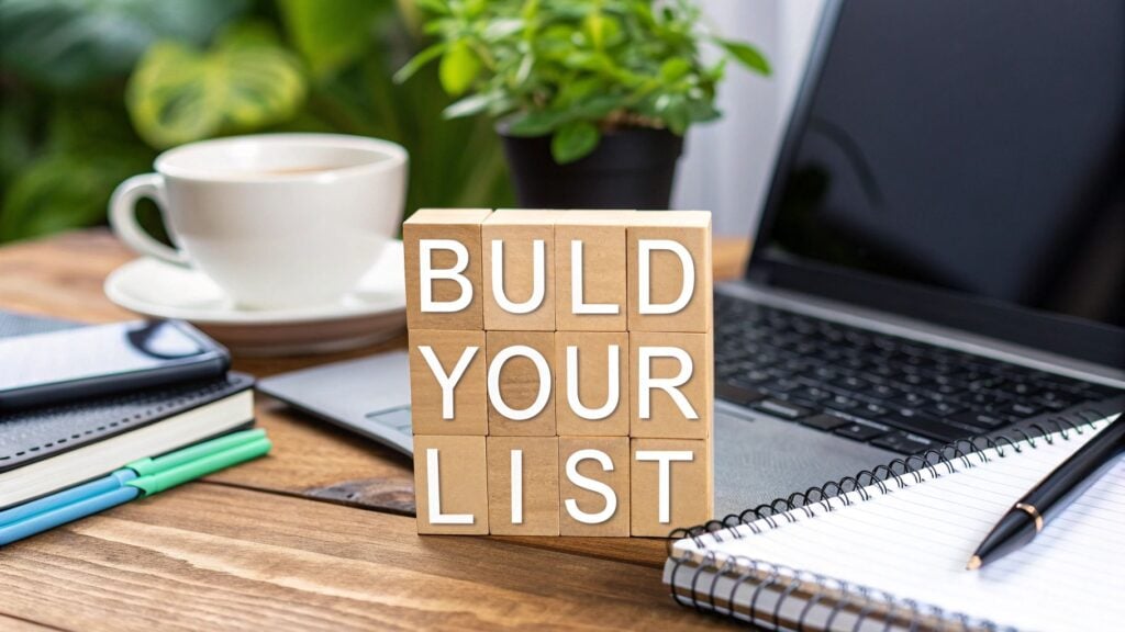Building an email list comes down to a simple exchange: you offer something valuable, and in return, someone gives you their email address. The whole process is about creating a great free resource, setting up a simple signup system, and then building a real relationship through helpful communication.