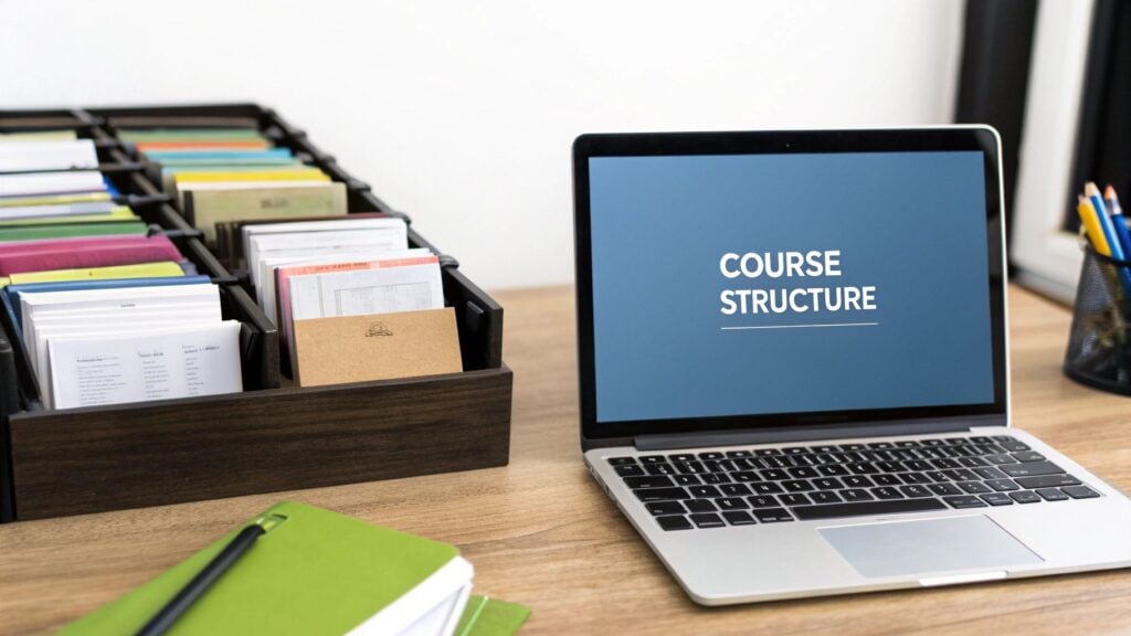 This method turns a chaotic brainstorm into a clear, logical path for your students. If youโre looking for a great starting point, you can even download a helpful and totally free course outline PDF template to get your ideas organized.